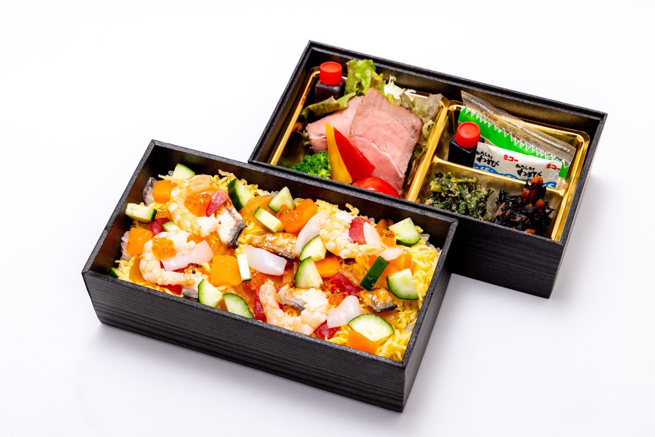 内容:海鮮バラちらし(蒸し海老・錦糸卵・かんぴょう・サーモン・まぐろ・いか・うなぎ・きゅうり・いくら・酢飯)自家製ローストビーフ・ブロッコリー・ミニトマト・パプリカ・お惣菜2点